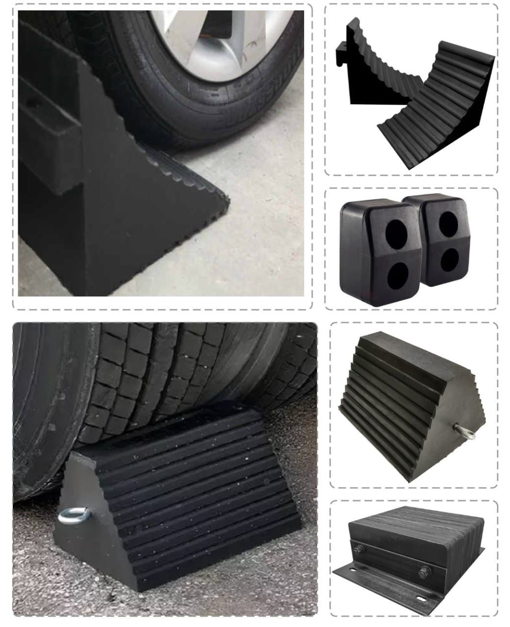 - Tope cuña y pirámide: Ofrecen una solución segura y duradera para estabilizar vehículos y equipos.